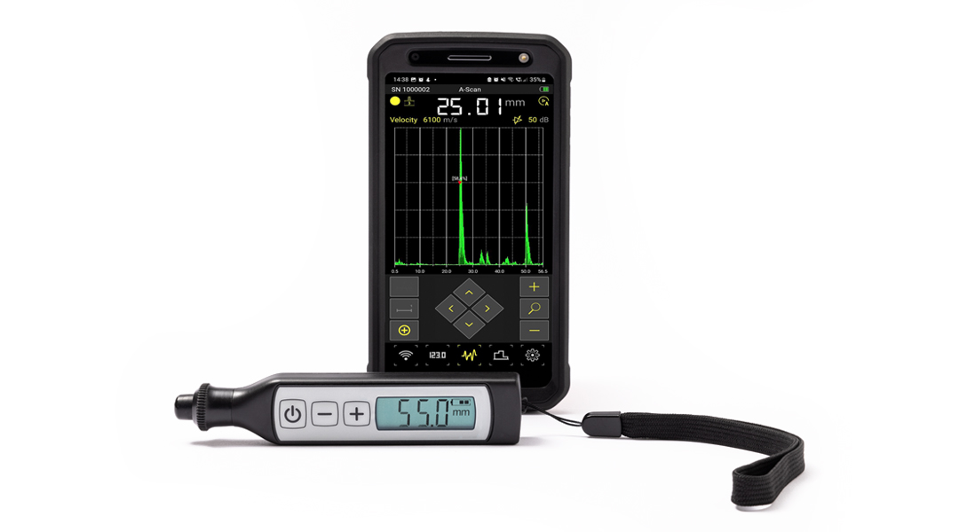 A dedicated software application allows viewing the digital measurement results and A-Scans of the signals for iOS & Android devices.