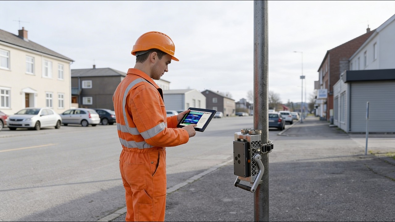 The inspection task involves the detection of hidden corrosion in metallic structures such as pipelines and light poles, particularly in hard-to-access areas, for example beneath pipe supports. Using guided ultrasonic waves and Dry-Point-Contact (DPC) transducers, the entire circumference of the structure is scanned over 360°. During the inspection, the system acquires multi-channel ultrasonic data at various measurement positions and generates B-scan images using the Synthetic Aperture Focusing Technique (SAFT). This enables users to determine the location and severity of corrosion without having to dismantle the structure or interrupt operation.