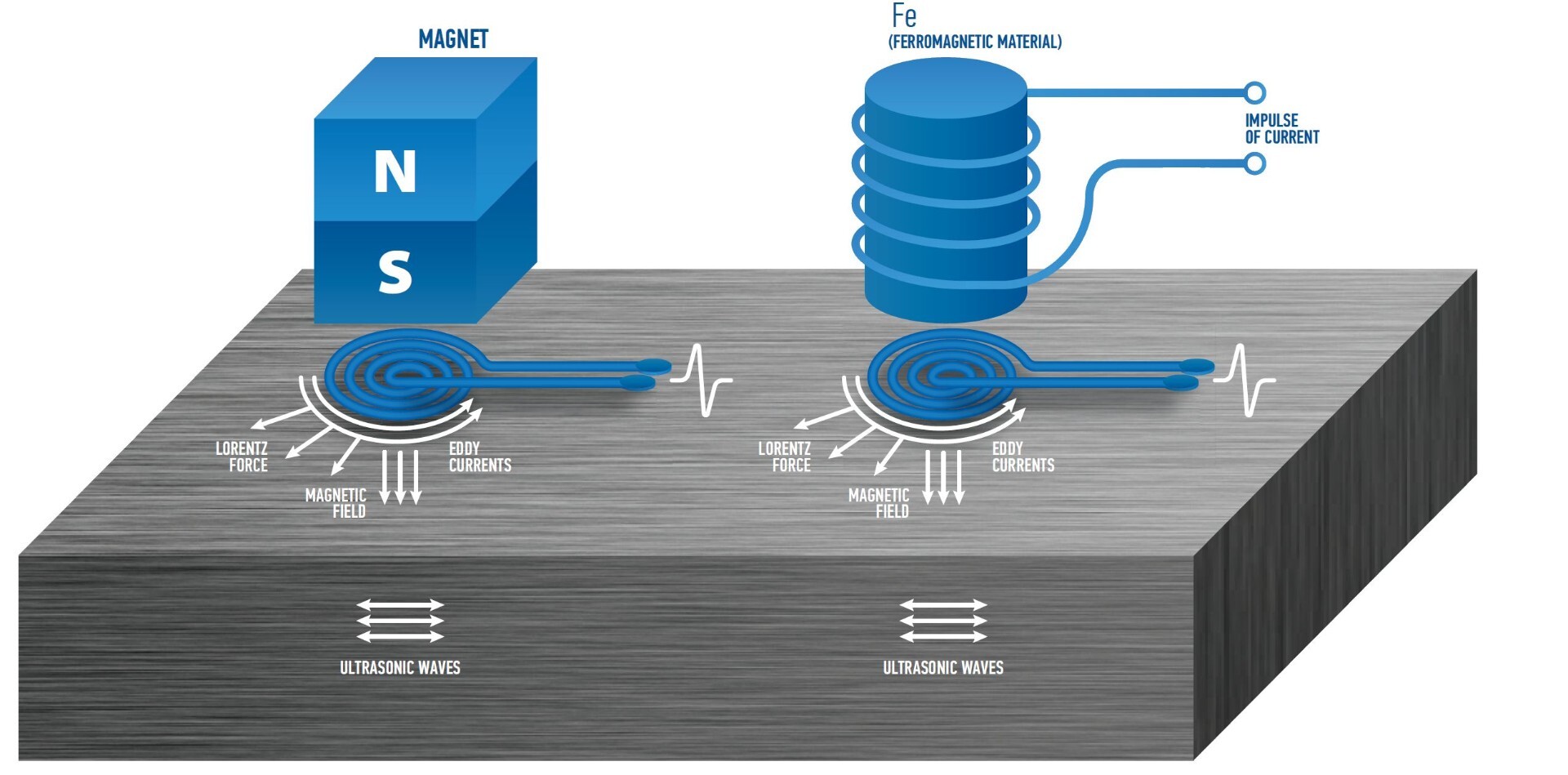 Substantial advantage of the new technology represents absence of a permanent magnet in the EMA transducers thus allowing sidestepping of strong adhesion of the transducer to the surfaces of the objects made of ferromagnetic steel; allowing scanning of the object being inspected, and preventing metal chips from sticking to the transducer’s protector, thus extending its service life.
