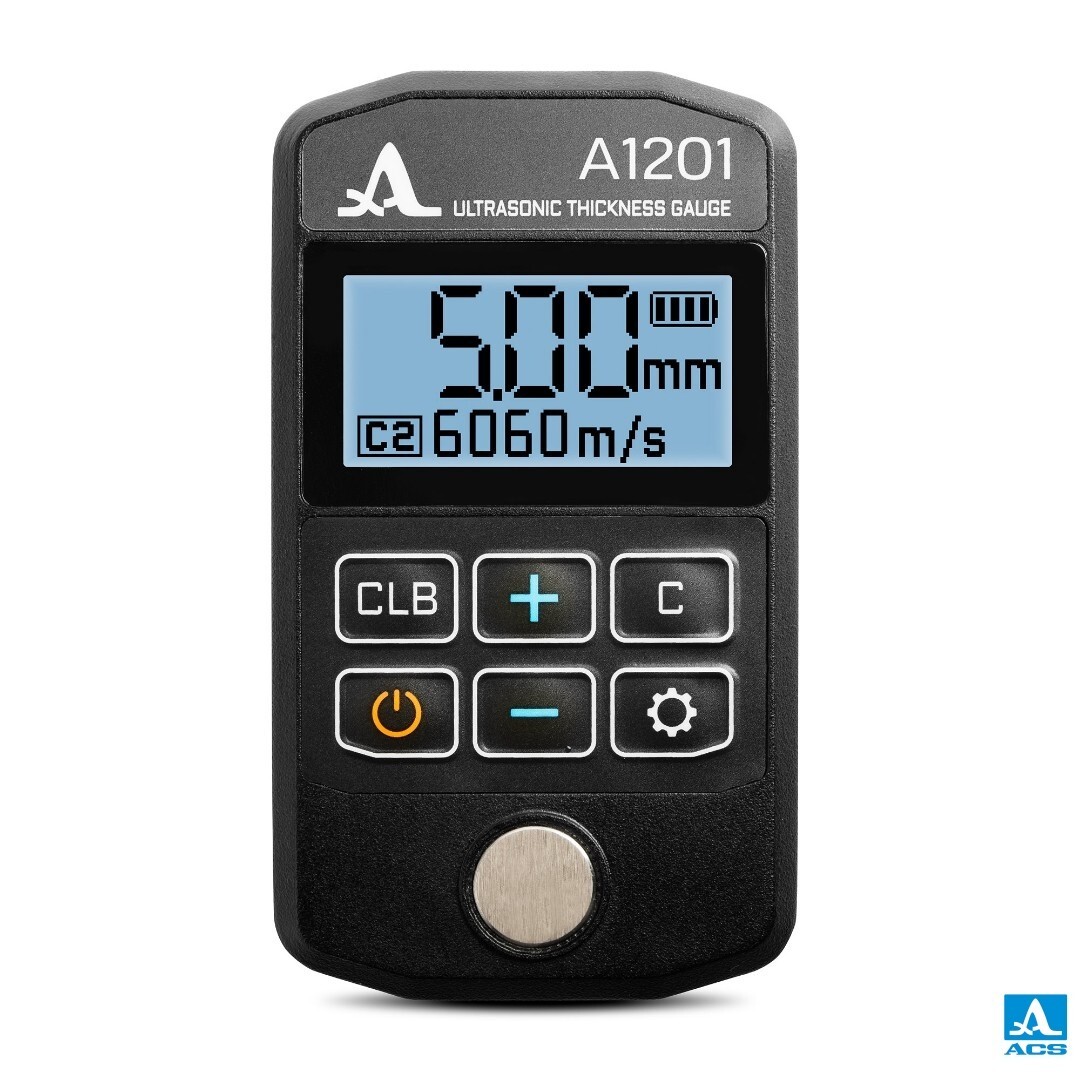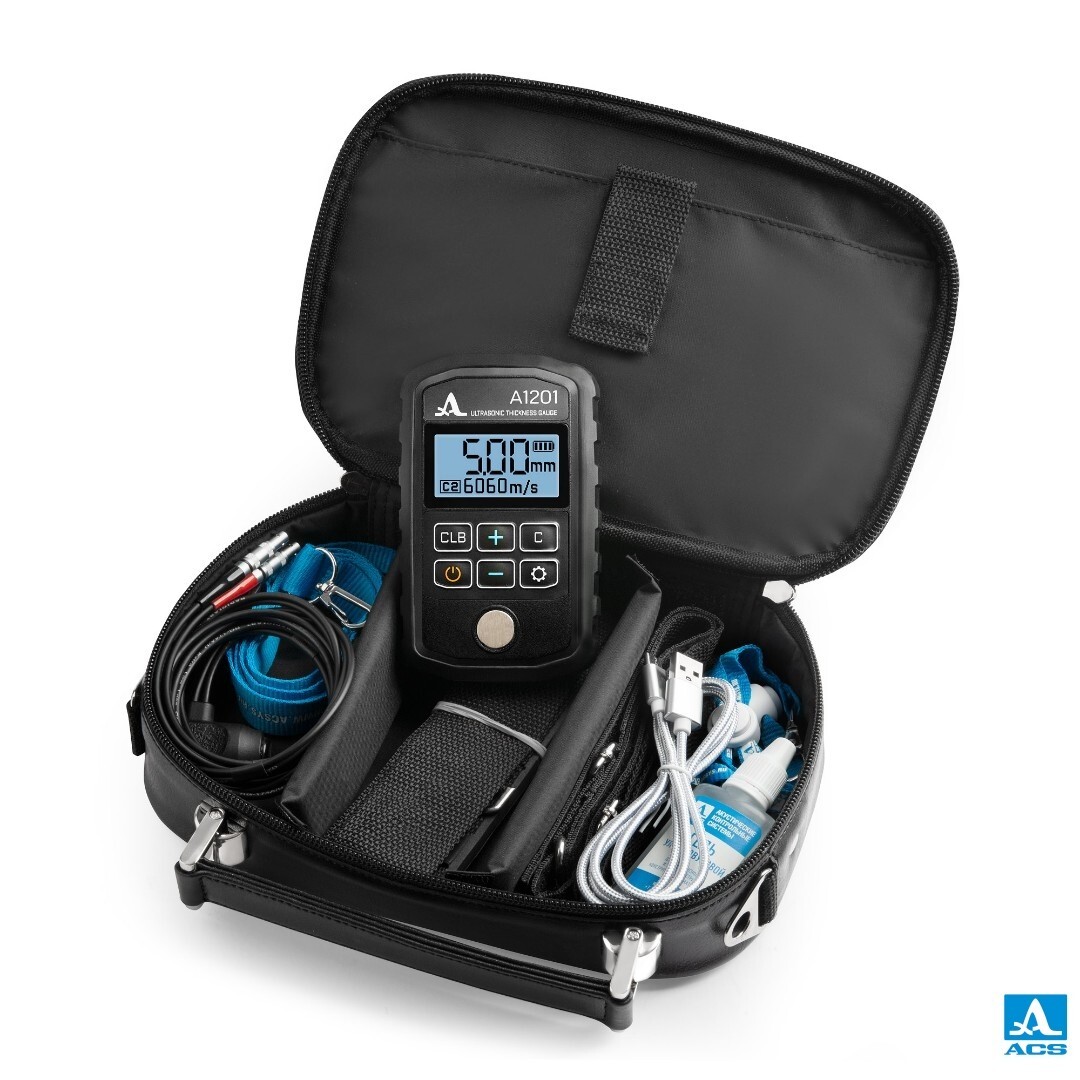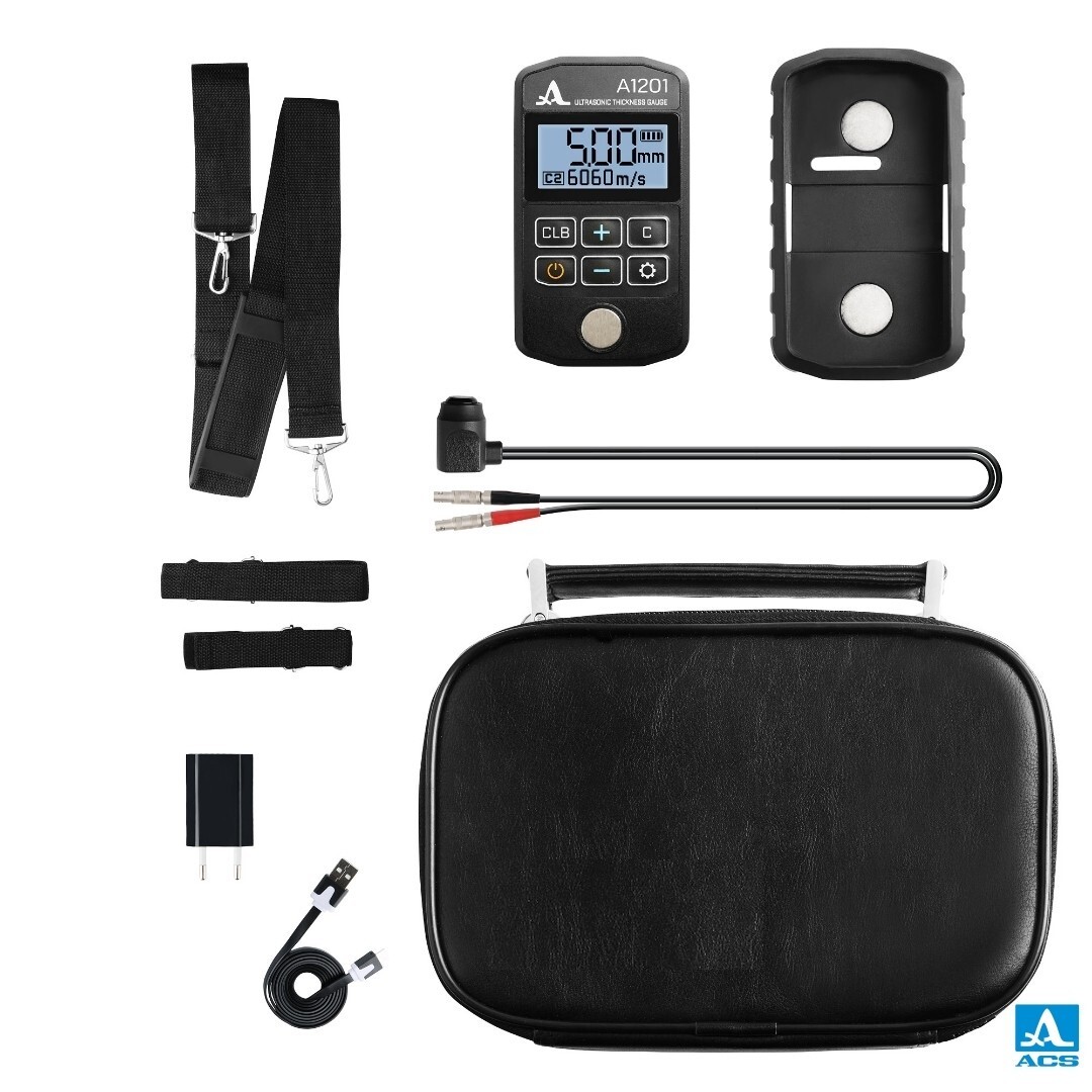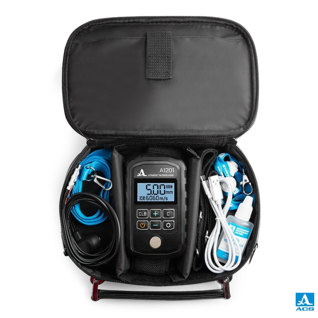 The universal model of the compact ultrasonic thickness gauge offers exceptional ease of setup and use at an affordable price. It is designed for quick and efficient thickness measurements of various steel objects, including small-diameter pipes (from 20 mm), within a 0.7 to 300 mm thickness range.