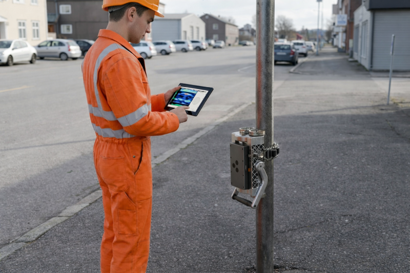 A compact guided wave ultrasonic inspection system designed for rapid detection of hidden corrosion in pipes and light poles—especially in hard-to-access areas such as under supports. Utilizing dry-point-contact (DPC) transducers, the system requires no couplant and enables efficient field deployment. The scanner performs a full 360° circumferential scan, capturing high-resolution B-scan images that clearly indicate corrosion locations and severity. Its robust, portable design and intuitive data visualization make it ideal for on-site inspections, delivering reliable results with minimal setup time.