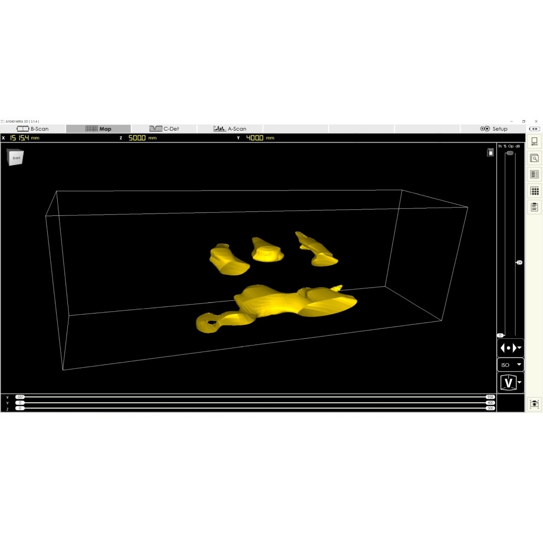 The application software MIRA NEO is dedicated to acquisition of measurement data of the ultrasonic tomography system A1040 MIRA 3D in automated inspection systems. Further, the MIRA NEO software offers the full-scale 2D and 3D visualization and analysis tools for post-processing collected data of A1040 MIRA 3D.